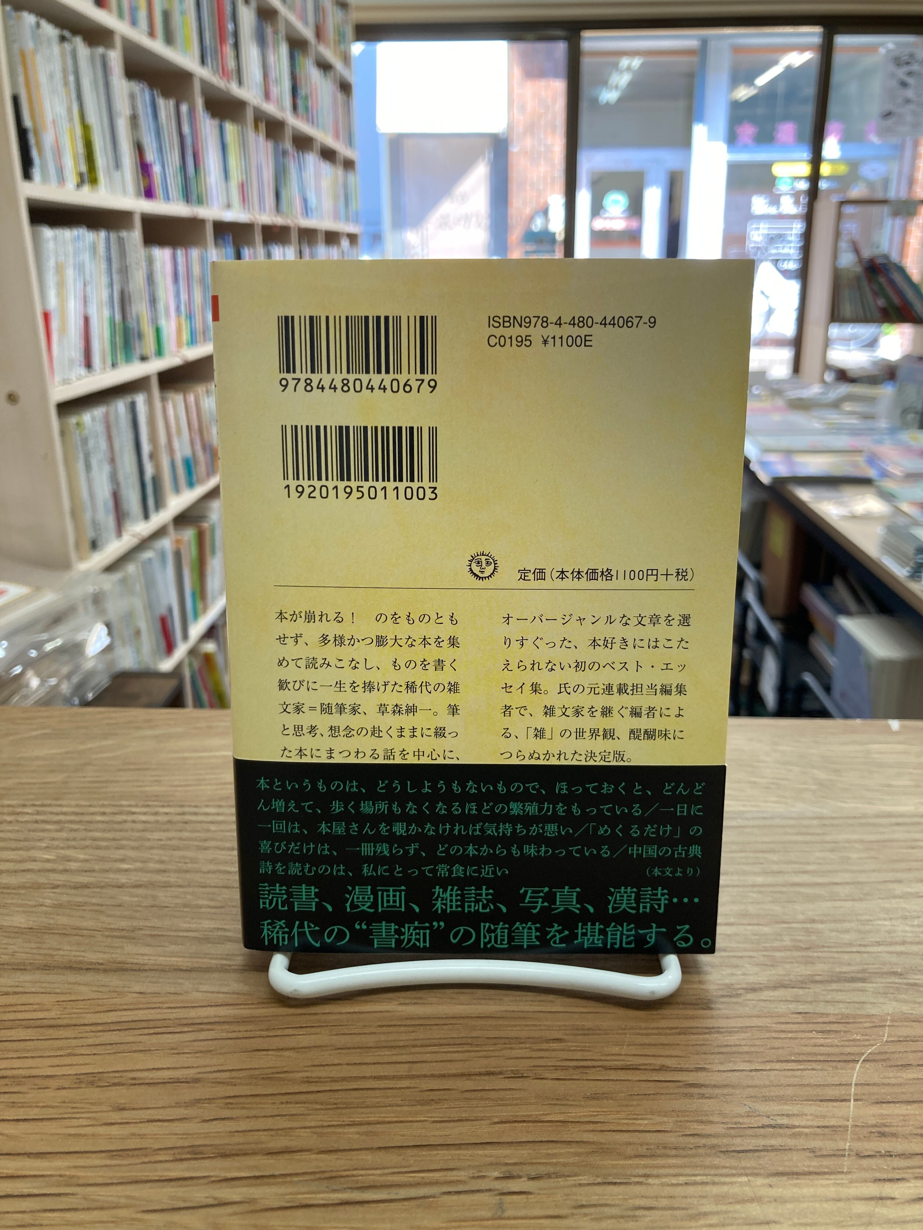 本が崩れる! のをものともせず、多様かつ膨大な本を集めて読みこなし、ものを書く歓びに一生を捧げた稀代の雑文家=随筆家、草森紳一。筆と思考、想念の赴くままに綴った本にまつわる話を中心に、オーバージャンルな文章を選りすぐった、本好きにはこたえられない初のベスト・エッセイ集。氏の元連載担当者で、雑文家を継ぐ編者による、「雑」の世界観、醍醐味につらぬかれた決定版。(カバー裏より)